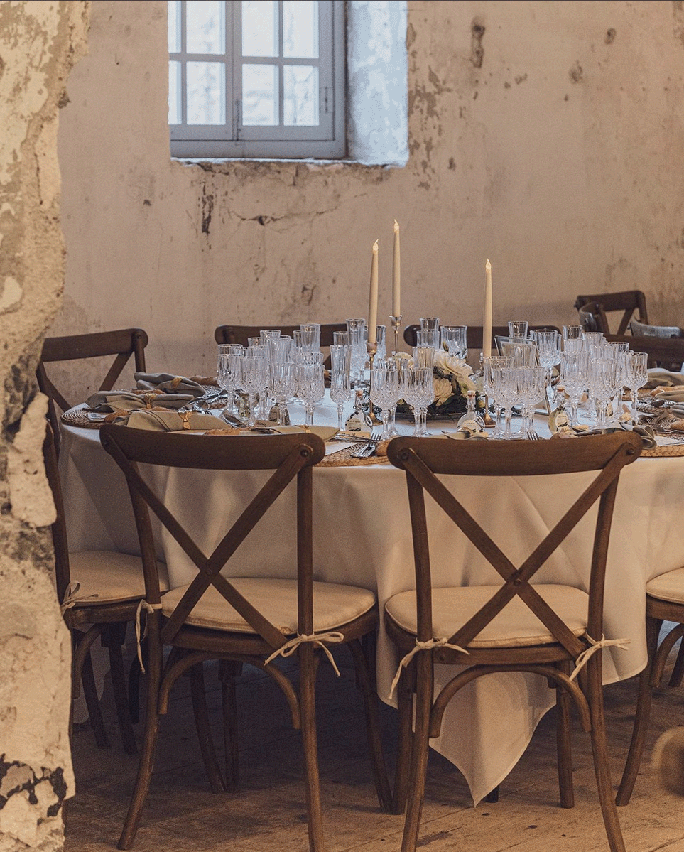 Disponible à la location, cette chaise s'harmonise avec divers décors, ajoutant une ambiance chaleureuse et authentique à votre occasion spéciale.